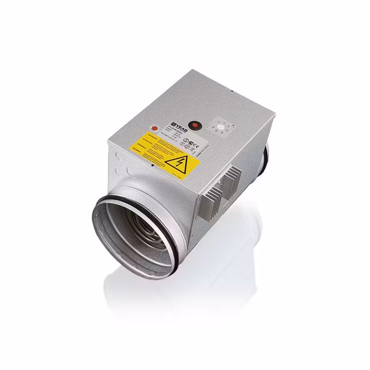 Kanalvärmare med inbyggd styrutrustning för rums- eller kanalgivare. Värmaren kan ställas om för extern börvärdesinställning eller för börvärdesinställning på värmarens lock.