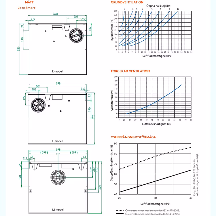 - Utmärkt osuppfångningsförmåga: 77 %, 30 l/s / 108 m