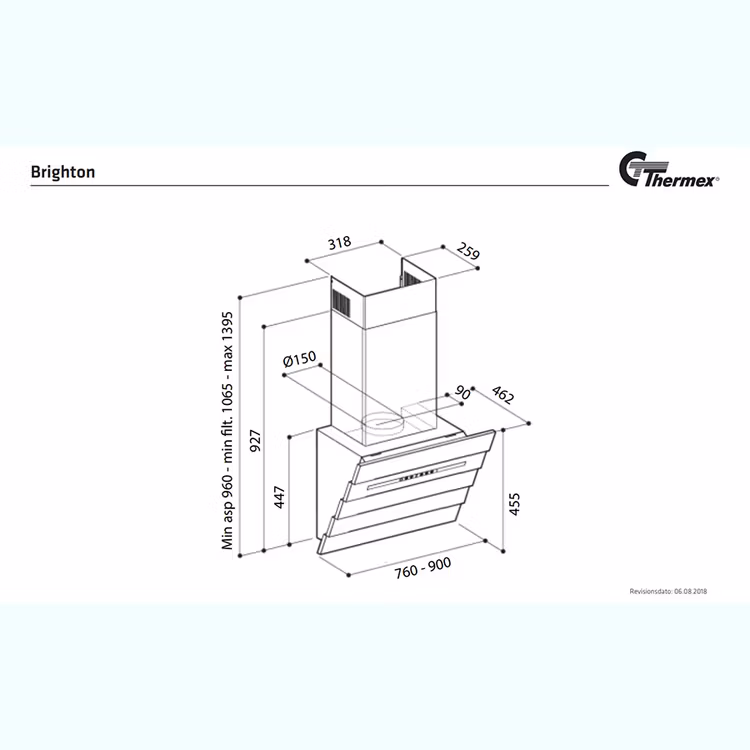 Thermex köksfläkt Brighton lyfter ditt kök med sin unika design. Med en snedställd front får du mer utrymme för att laga mat.